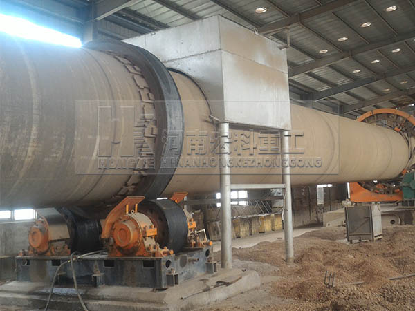 圓筒形的主窯體與水平呈3°左右的傾角放置在托滾上。物料在高的一端進(jìn)入窯內(nèi),在窯體做回轉(zhuǎn)運(yùn)動(dòng)的作用下, 物料從高處(窯尾)滾落至低處(窯頭),同時(shí),在窯頭處,高壓風(fēng)機(jī)將煤粉(或天然氣等其他燃料)噴入窯內(nèi),并使其充分燃燒,產(chǎn)生的熱量使物料發(fā)生物理和化 學(xué)變化,產(chǎn)生膨脹現(xiàn)象,冷卻后既為陶粒。